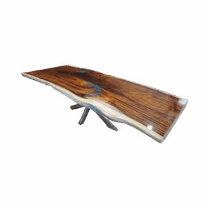 Deze prachtige massieve suar houten tafel combineert natuurlijke elegantie met stoere industriële details. Het blad is vervaardigd uit één stuk suar hout en toont een schitterende houttekening en een organische boomstamrand (live edge). Dankzij deze natuurlijke vormgeving is elke tafel uniek en heeft zijn eigen karakter.